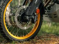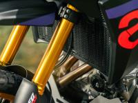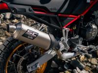 Equipped with an updated engine map, Aprilia Tuareg Rally offers a quicker, more responsive throttle response. This setup ensures optimal control when overcoming obstacles, allowing for precise handling on the most challenging off-road sections. The SC Project exhaust, specifically designed for the Rally, is made from titanium and features a racing end cap with a 60 mm outlet to enhance performance and sound. It also reduces the overall weight of the motorcycle to a curb weight of just 199 kg.