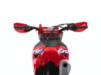 The CRF250RX now has the same HRC-developed chassis as the CRF450RX. Its 249.9cc DOHC engine’s legendary top-end power is bolstered by strong mid-range torque and now, even stronger bottom-end drive. But it also has new steering geometry and Showa suspension re-set for use away from the MX track, an 18-inch rear wheel, larger fuel tank, knuckle guards and sidestand. So, when the going gets really tough – or tight and technical – and where bigger bikes become difficult and simply wear you out, this motorcycle shines. Its power delivery keeps you moving forward while the chassis finds all the grip there is. And helps you use it. The CRF250RX makes fast, easy.