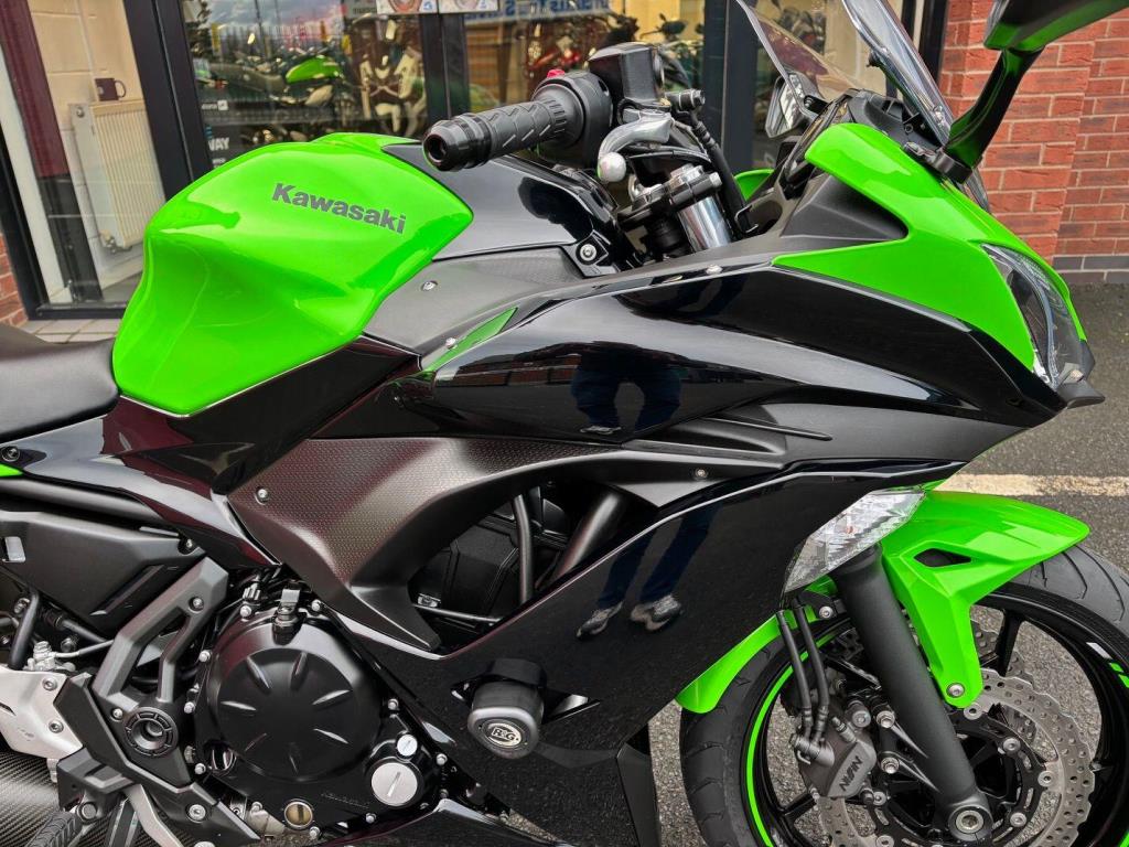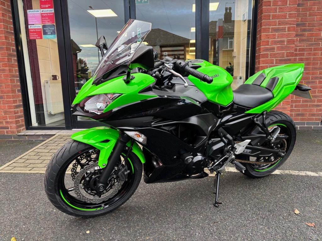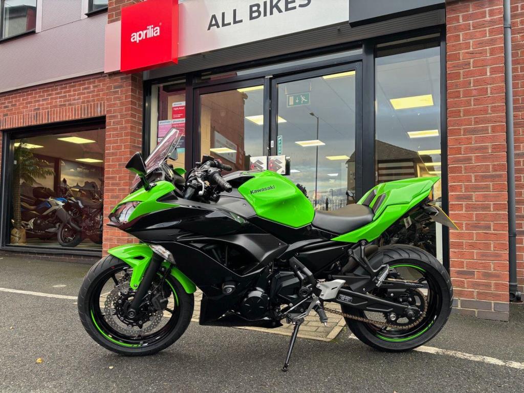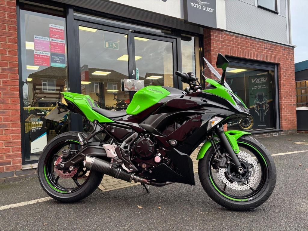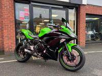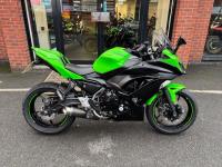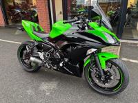 Kawasaki Ninja 650 with only 10571 miles from new in lovely condition, very popular and practical sports bike and this one comes with a sports exhaust ( original as well ), tail tidy & seat cowl, service history, hand books 2 keys.