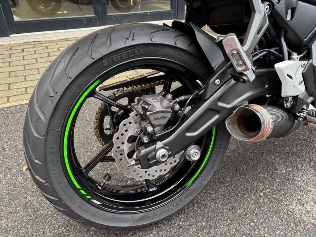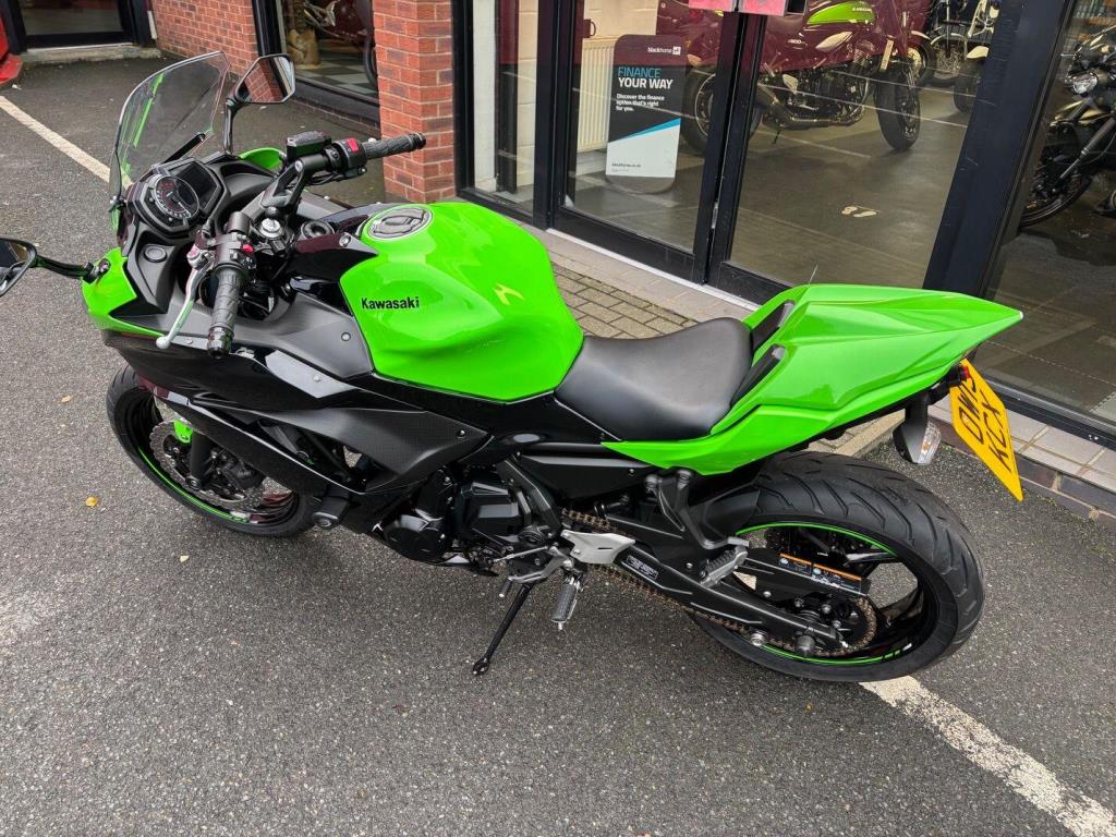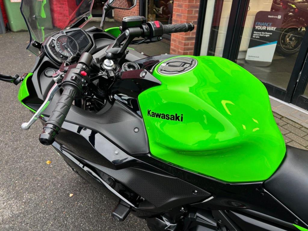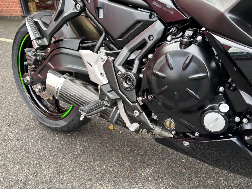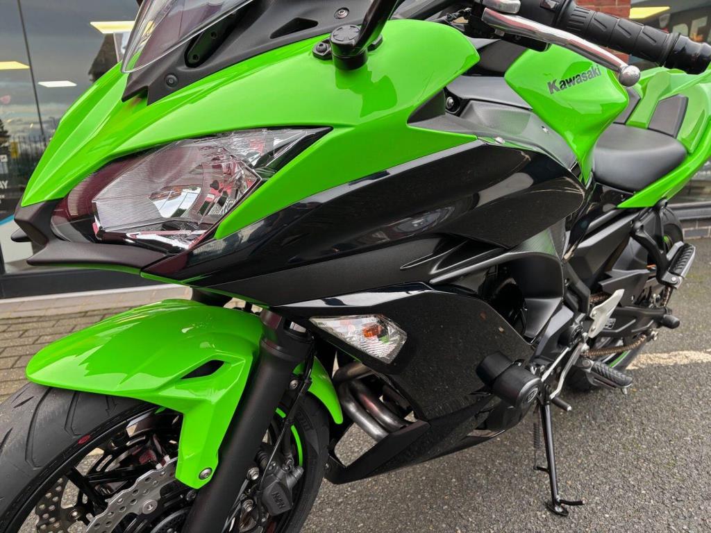 Kawasaki Ninja 650 with only 10571 miles from new in lovely condition, very popular and practical sports bike and this one comes with a sports exhaust ( original as well ), tail tidy & seat cowl, service history, hand books 2 keys.