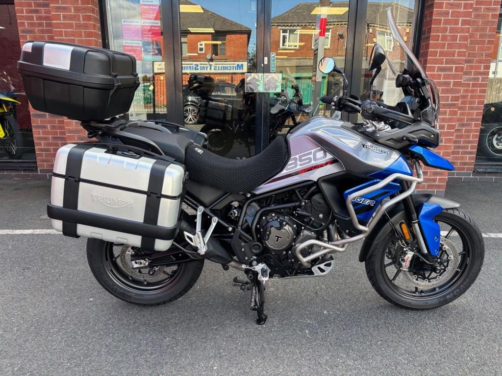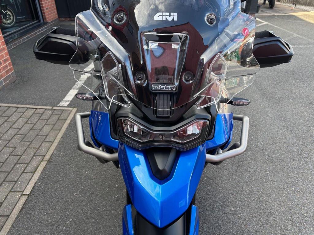 full Triumph luggage, quickshifter, heated grips & hand guards, engine bars top & bottom, centre stand, Givi touring screen.