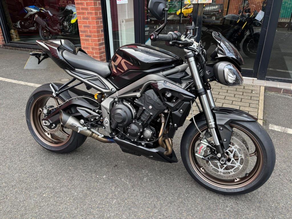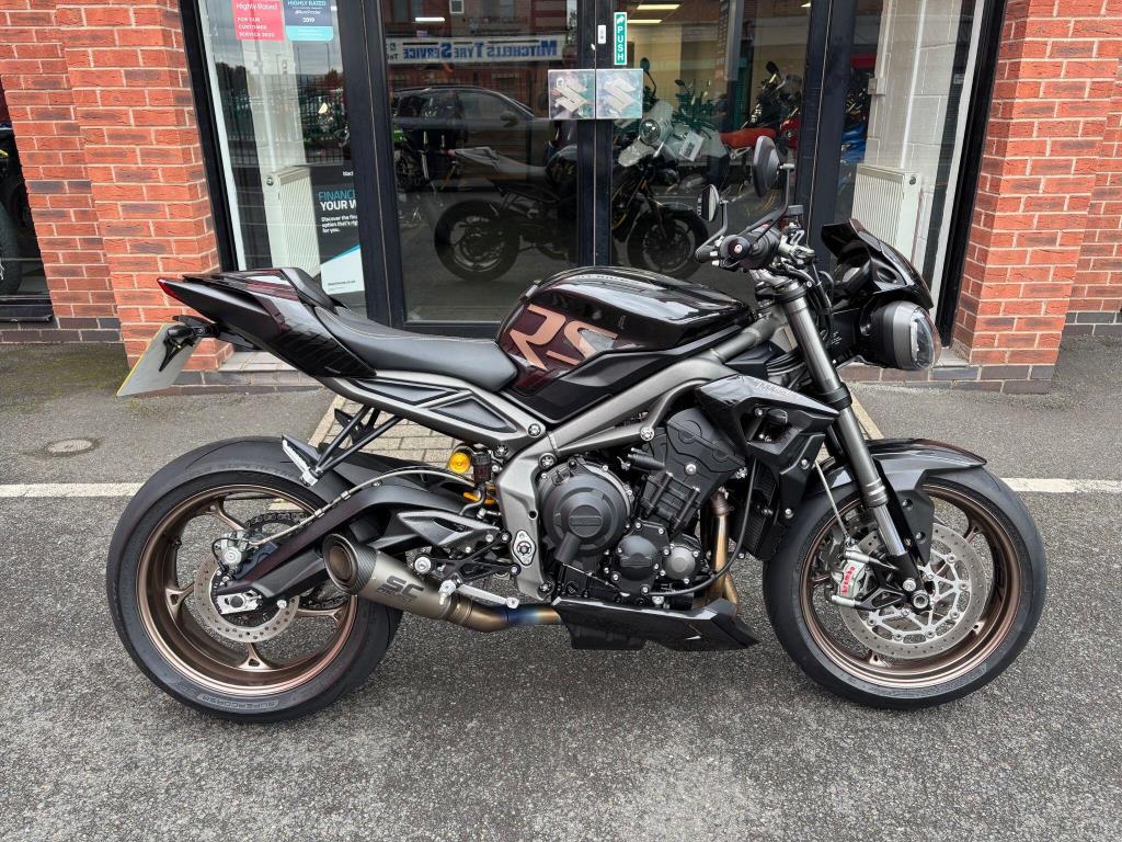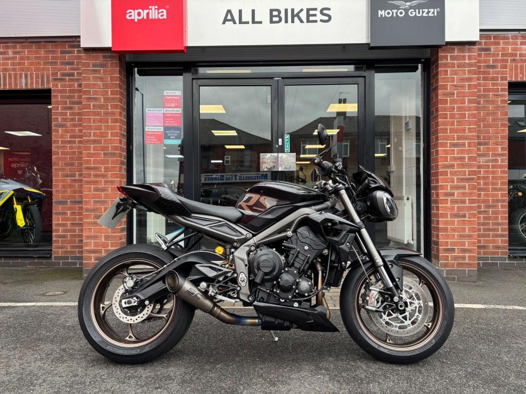 2023 Triumph 765 Street Triple RS only 6897 miles & Triumph service history, with the last one carried out at 5765 miles, plus this bike is fitted with SC Projects exhaust & rear tail tidy, just had recent new tyres and is in lovely condition.
